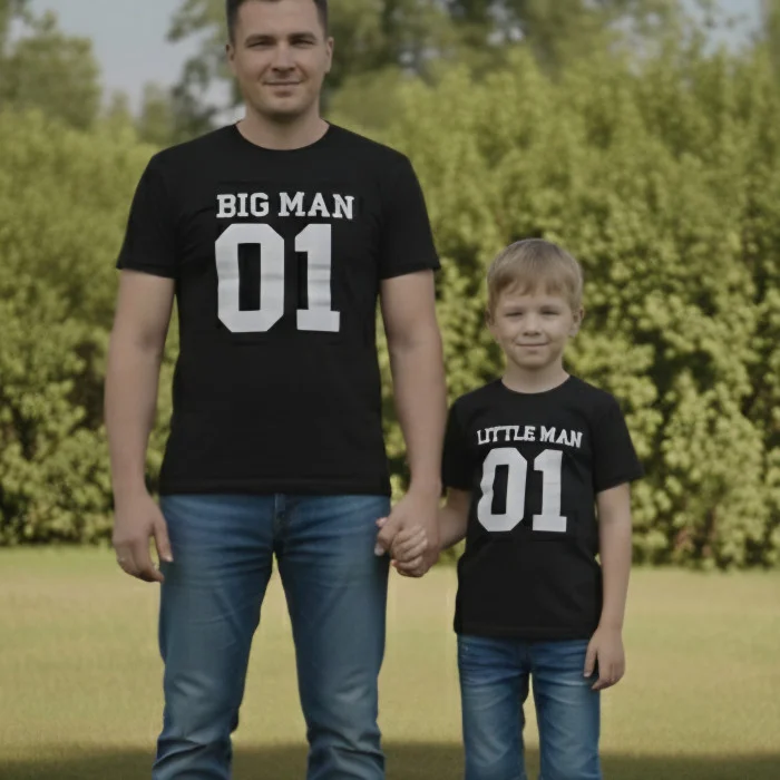 • Сімейні футболки чорні для тата і сина з куліру – прямий друк " Big man and little man"