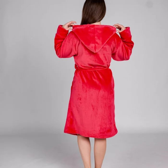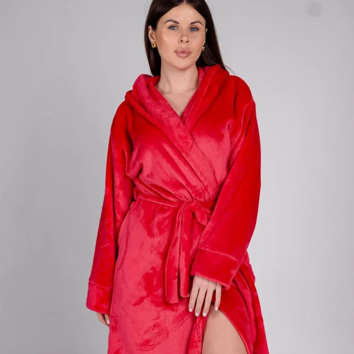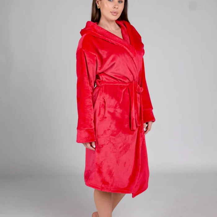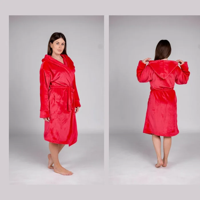 Махровий  халат прямого крою з коміром-кімоно, кишенями, на запах під пояс.