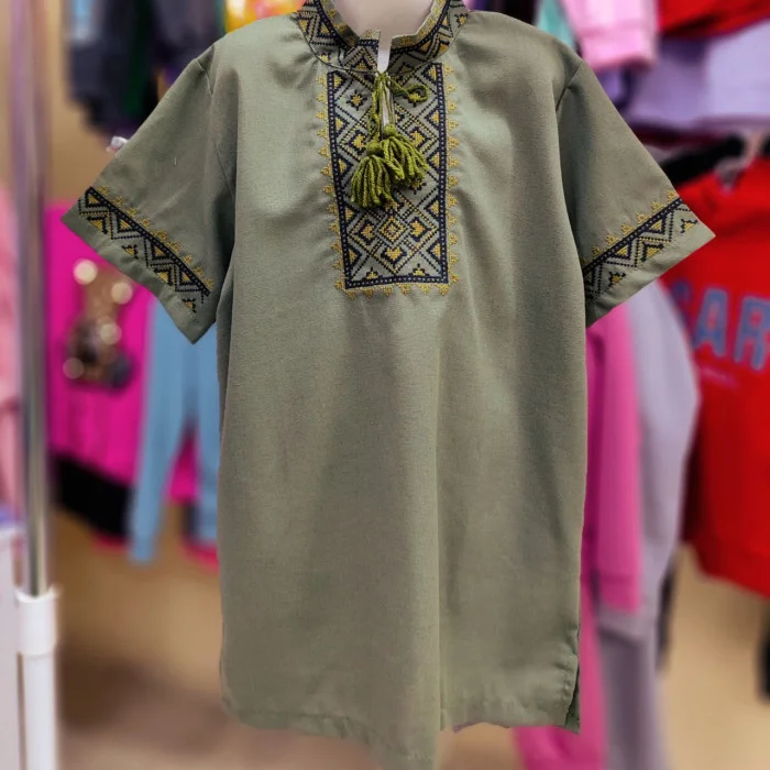 Класична вишиванка для хлопчика з натуральної тканини. хакі