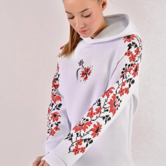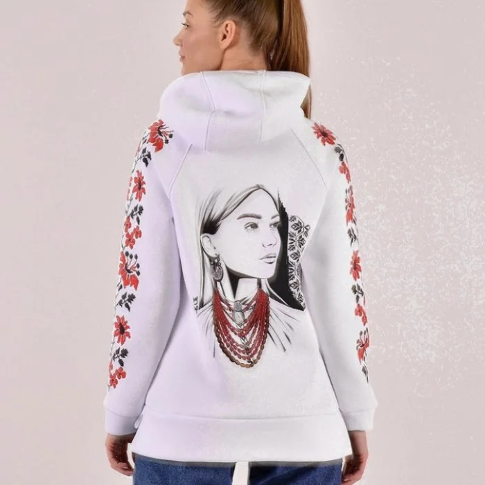 Худі білий "Українка" (з принтом)
