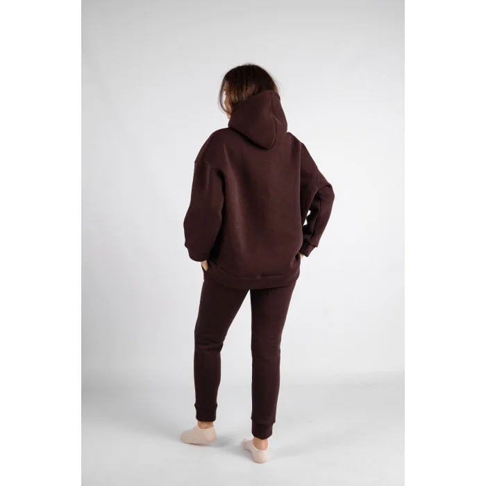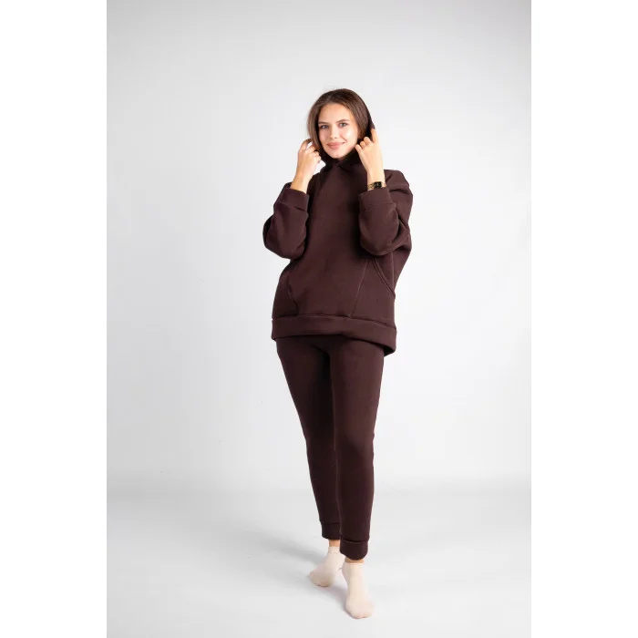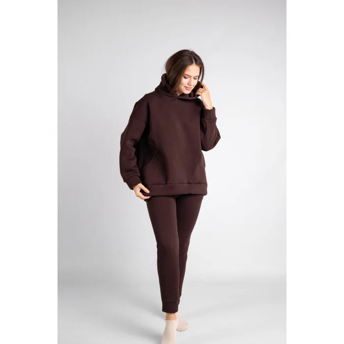 Костюм худі + штани (тринитка на флісі) з двома карманами шоколад