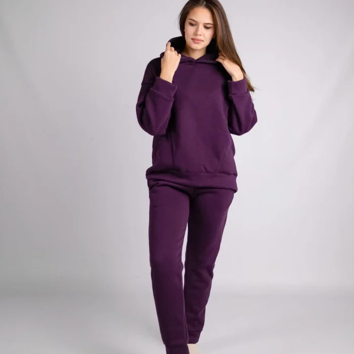 • Костюм худі + штани (тринитка на флісі) з двома карманами фіолетовий