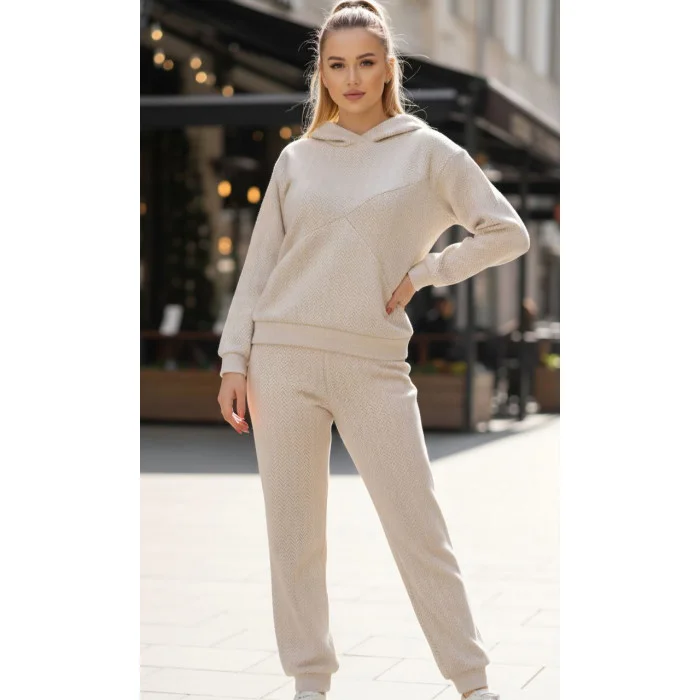 • Костюм з альпаки | Теплий жіночий костюм з капюшоном | Колір Кремовий