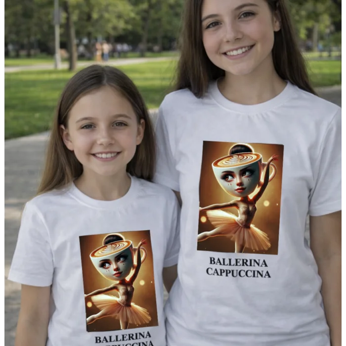 дитяча футболка, футболка для дівчинки, футболка з принтом, ballerina cappuccina, балерина капучино, дизайнерська футболка, арт футболка, футболка з малюнком, стильний дитячий одяг, біла футболка, футболка з ілюстрацією, футболка для літа, подарунок дитині, дитячий мерч, оригінальна футболка, cute t-shirt, kids t-shirt, ballerina t-shirt, aesthetic shirt